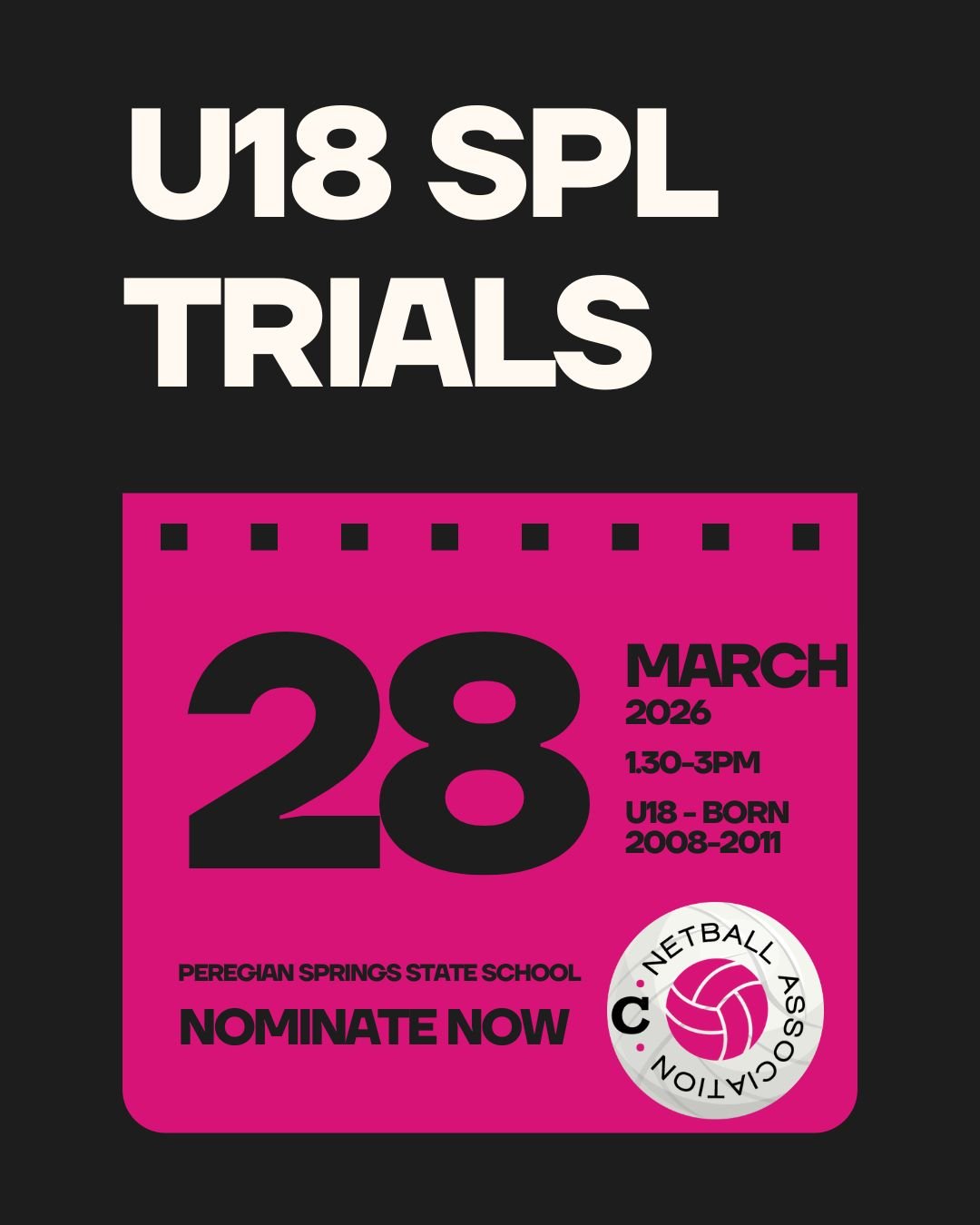 The Coolum District Netball Association will open nominations to trial for Open and U18-division players interested in representing the association in the 2026 Sunshine Coast Premier League (SPL) competition